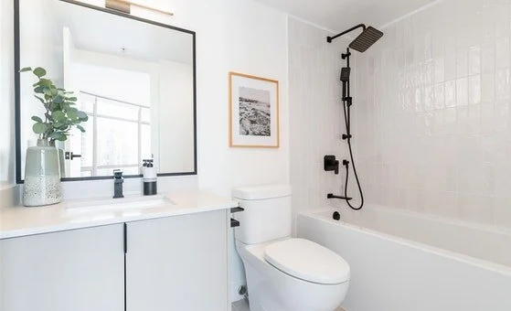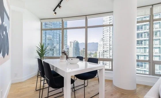 Luxury living at the Palisades! Come home to this over 900 sqft 2 bed AND office space with a full 2021 modern renovation. Features include matte satin finish cabinets paired with sleek Caesarstone counters and backsplash, all new stainless steel appliances in kitchen, and durable light oak laminate flooring throughout. Matching spa-inspired baths with Spanish-style tiles and black matte fixtures. Wake up to beautiful water, mountain and city views. Unbeatable downtown location on luxurious Alberni St. and next to famous Robson St. Building includes a designer lobby, concierge and gym. 1 Parking 1 Locker included. Pets and Rentals Allowed! Don't miss out on this one!